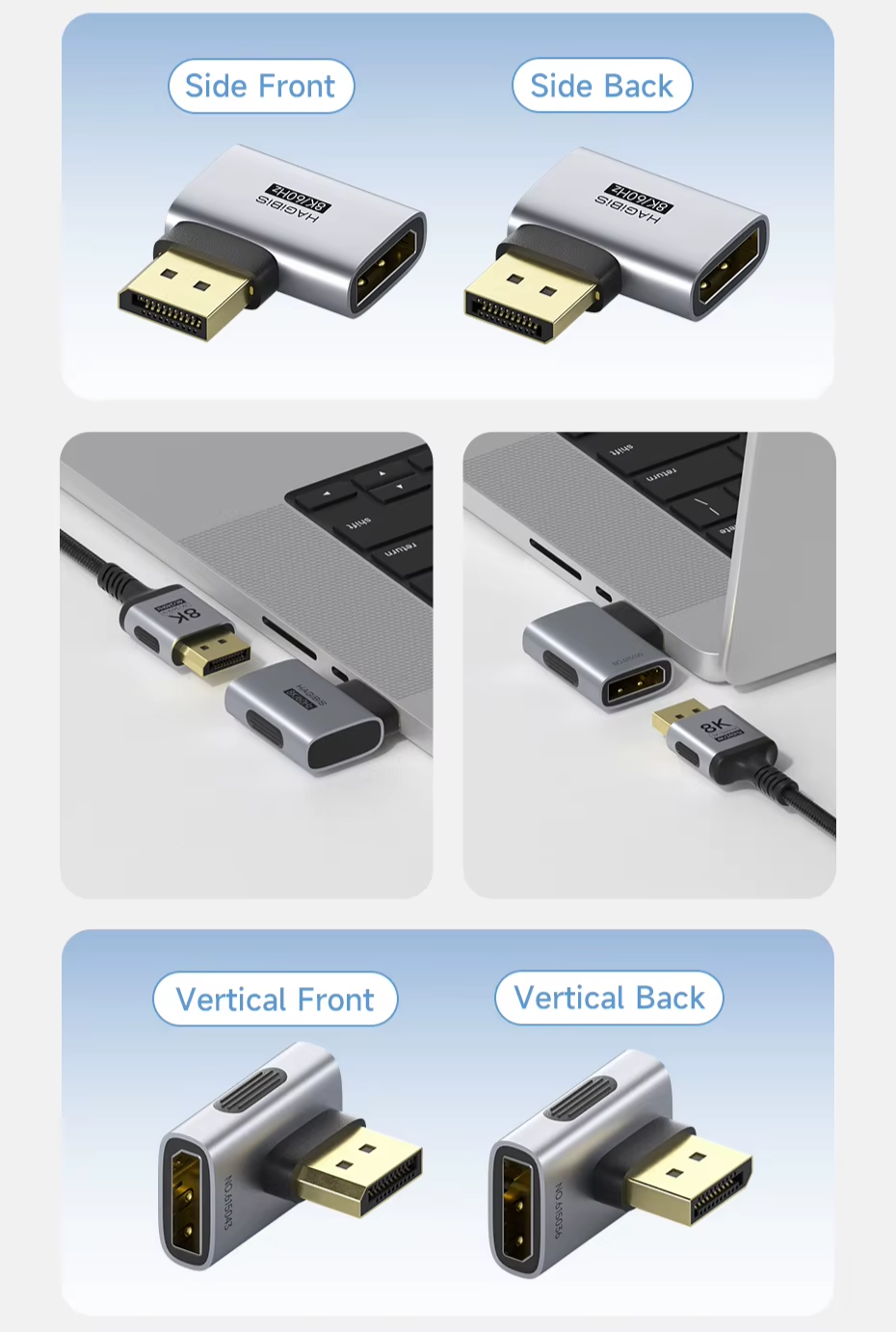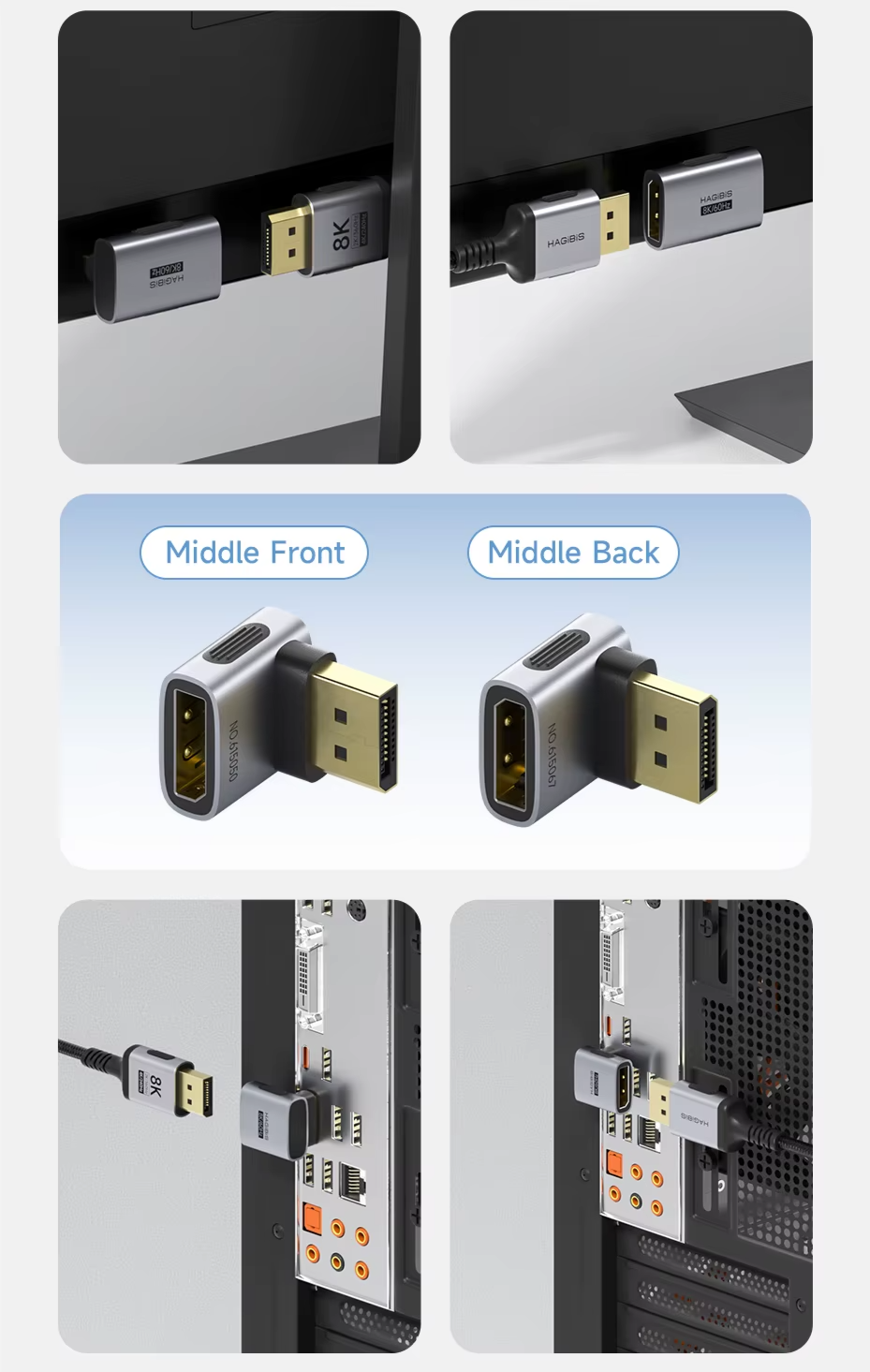 Adaptador DisplayPort 1.4 90° Hagibis: Desenvolvido para máxima performance e organização, suporta 8K a 60Hz e 4K a 240Hz, garantindo imagem ultra nítida e fluidez impressionante: