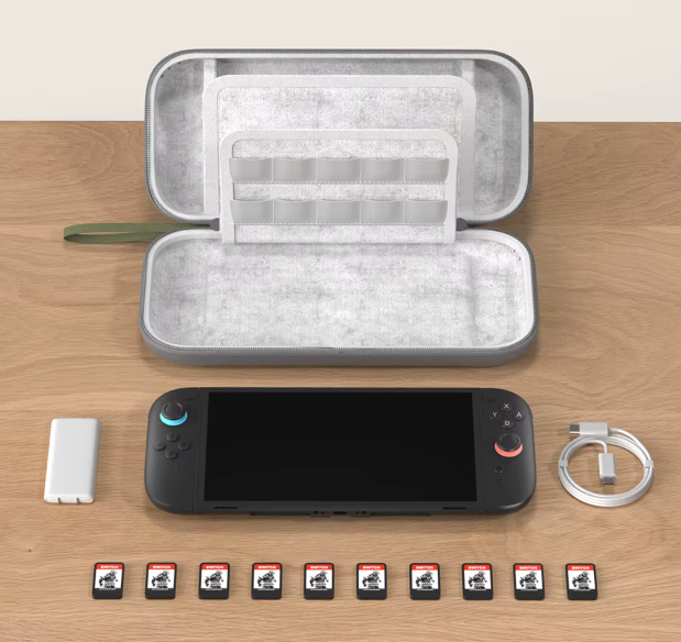 Proteção Rígida com Absorção de Impacto: Estrutura em EVA moldada em peça única, resistente à pressão e a choques, garantindo alta durabilidade e proteção superior para o seu Switch 2: