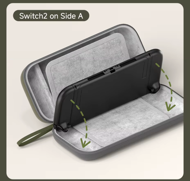 Compatível com Uso dos Dois Lados, mesmo com Grips Instalados: Design inteligente que permite armazenar o Switch 2 com ou sem alças, garantindo encaixe seguro, praticidade e proteção total: