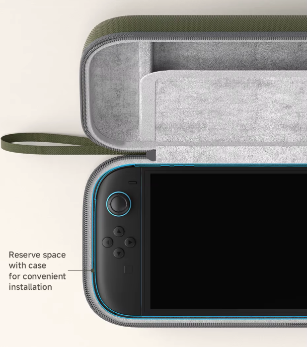 Compatível com Capa Protetora e Fácil de Instalar: Espaço interno reservado que permite guardar o Switch 2 com capa, sem travar ou forçar, garantindo encaixe rápido, prático e seguro: