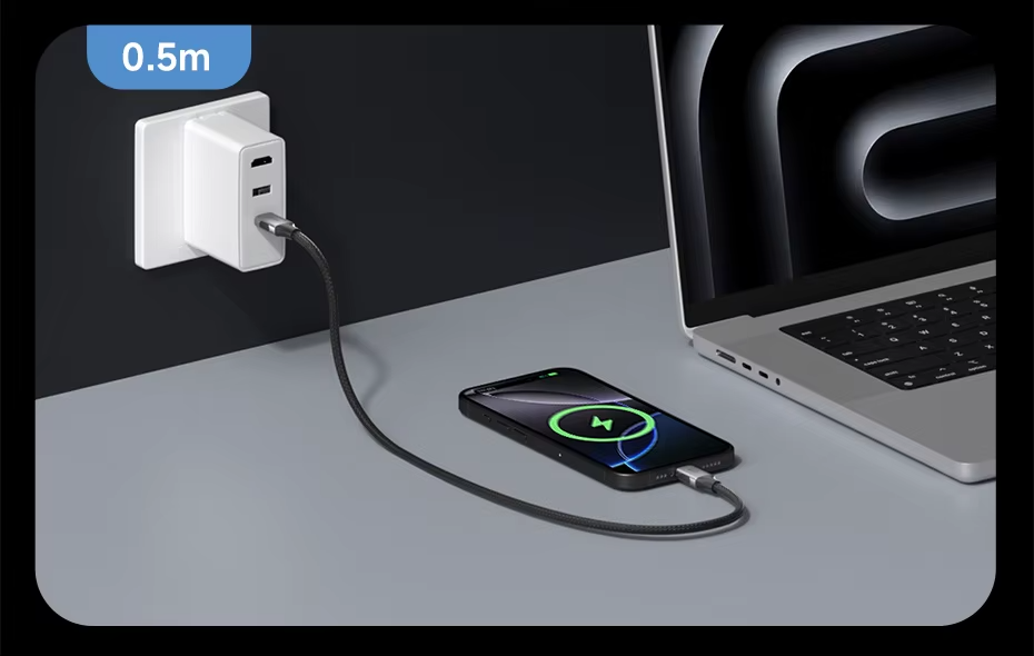 240W PD 3.1 Ultra Rápido: Fornece até 48V/5A para carregamento potente e estável, com compatibilidade total com PD 3.0 e PD 2.0 para smartphones, notebooks e consoles: