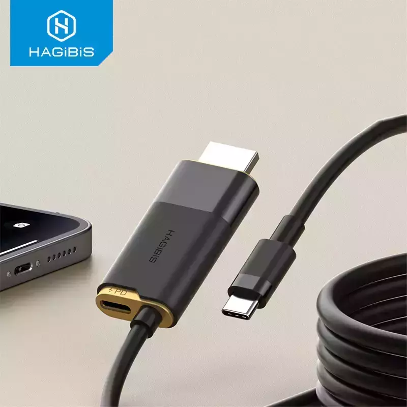 Cabo de Vídeo USB C para HDMI 2.1 8K 60Hz Hagibis: Compatível com Computadores, Tablets, Smartphones e etc.: