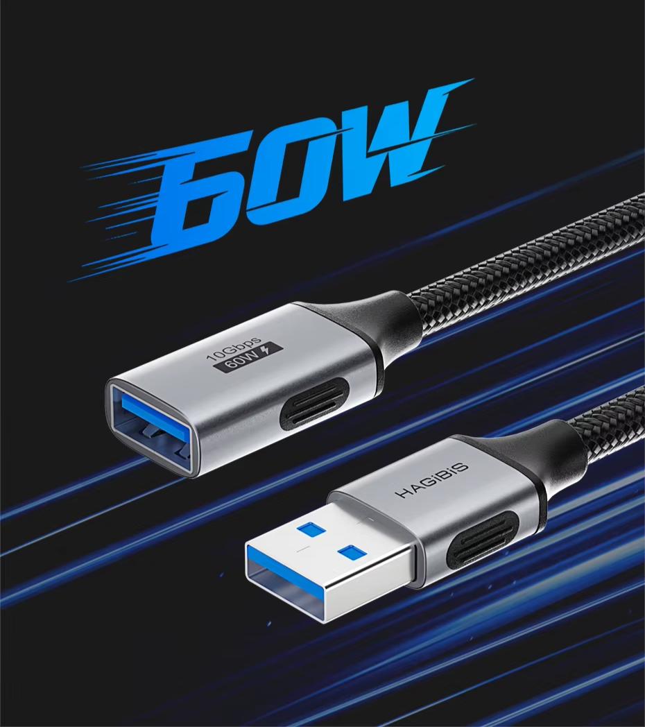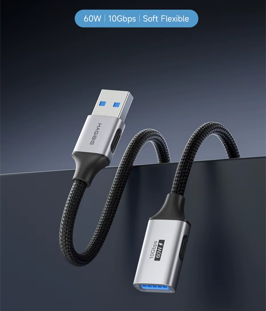 Extensor USB 3.2 — 10Gbps + 60W: Mais alcance, mais velocidade e carregamento rápido em um só cabo: