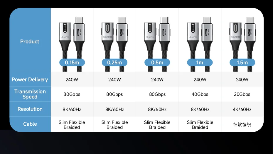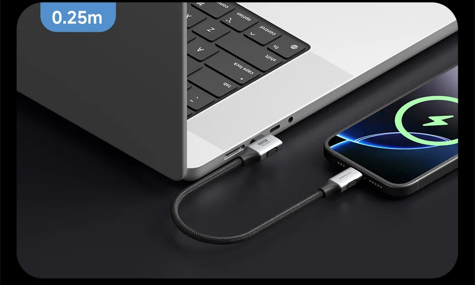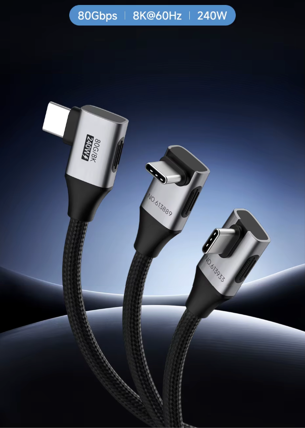 Máxima Performance com Design Inteligente: Cabo USB4 em ângulo de 90° que oferece até 80Gbps, suporte a 8K@60Hz e carregamento de até 240W: