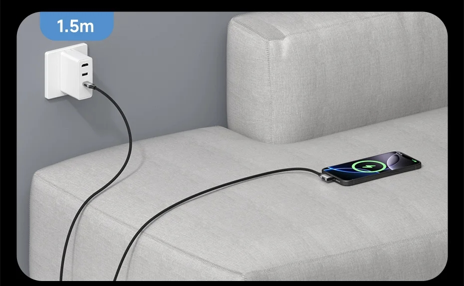 Cabo Trançado Ultra Resistente: Construção em nylon de alta densidade que garante maior durabilidade, resistência a puxões e evita nós: