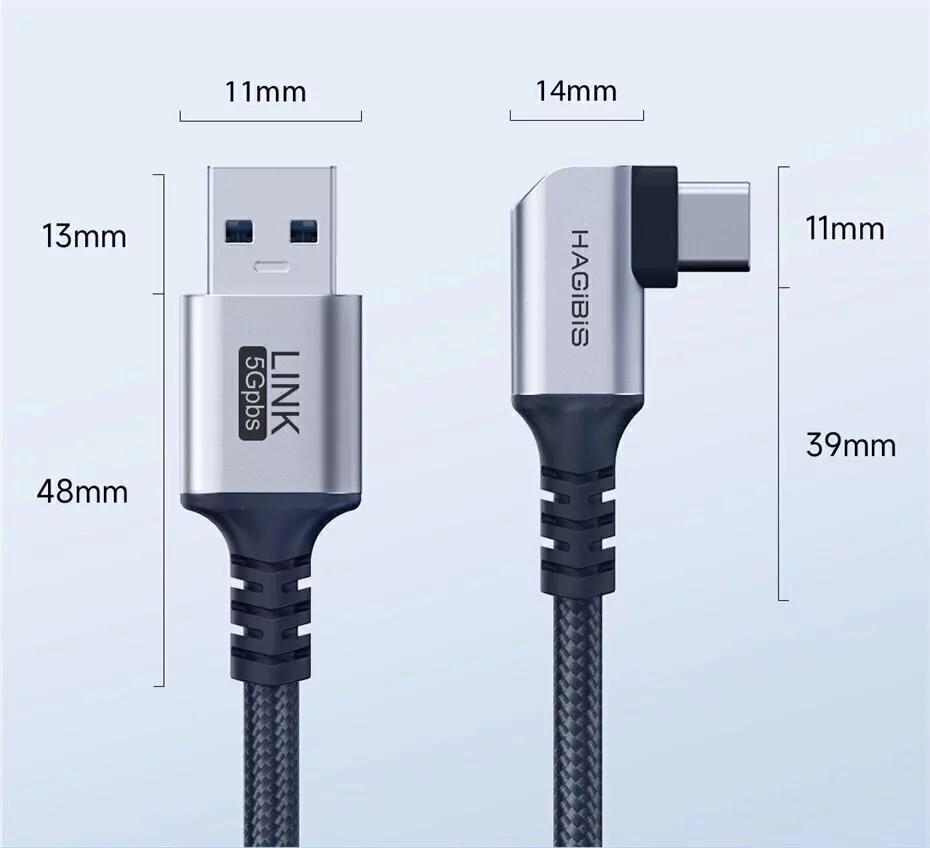 Cabo Link Oculus Quest 2 VR 90º Hagibis: USB-C com alta velocidade de transmissão: