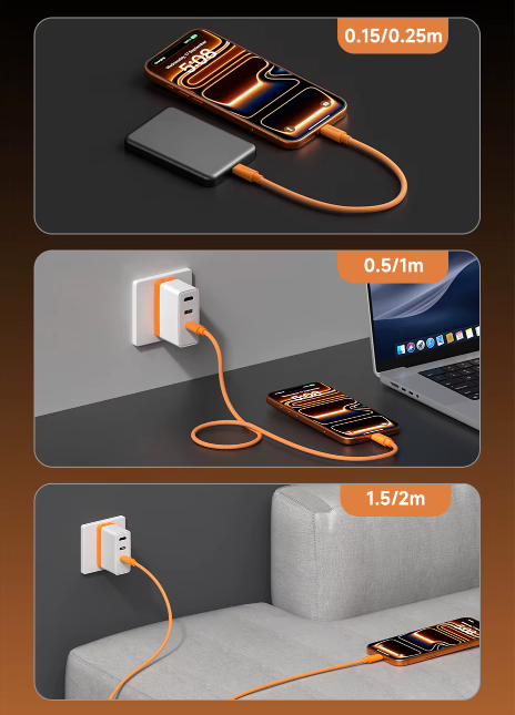 Vários Comprimentos para Cada Situação: Escolha o tamanho ideal para o seu dia a dia: versões curtas para power banks e mesas compactas, intermediárias para uso em tomadas e notebooks, e longas para conforto no sofá, cama ou escritório. Versatilidade total para qualquer cenário: