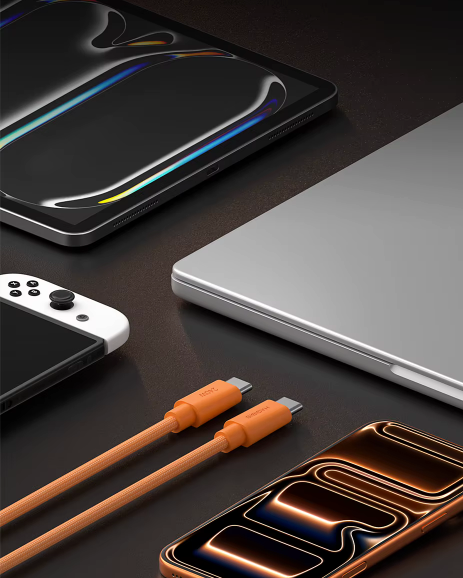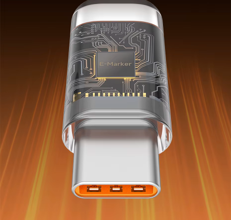 Chip E-Marker Integrado: Carga Rápida com Segurança: Equipado com E-Marker inteligente, o cabo reconhece automaticamente a potência ideal do dispositivo, garantindo carregamento rápido, estável e sem riscos:
