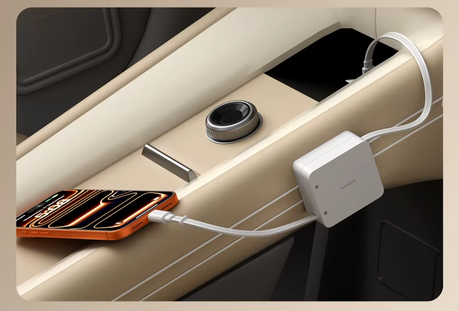 Cabo USB-C Retrátil 100W: Carregamento rápido e prático com 1,3 m de comprimento, retração suave e design compacto para uso diário:
