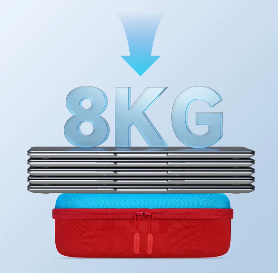 Proteção Reforçada Contra Impactos: Case resistente à pressão e quedas, suportando peso sem deformar. Seus acessórios e dispositivos ficam seguros no dia a dia, mesmo em transporte intenso: