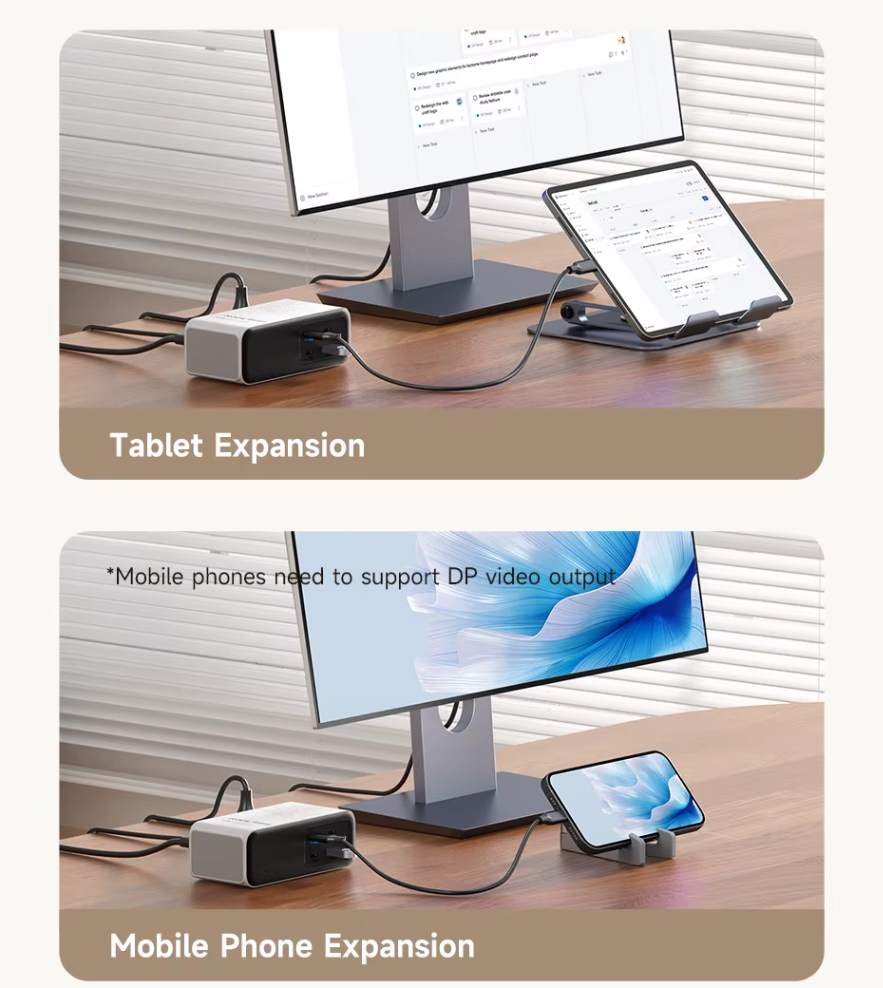Modo Dock Único • Prático e Versátil: Use como estação de dock padrão, mesmo sem alimentação direta: