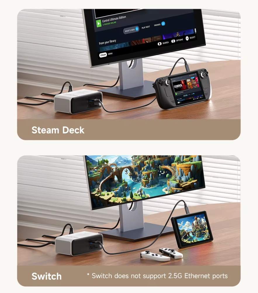 Uso em Múltiplos Cenários • Um Dock para Tudo: Ideal para trabalho, games e entretenimento: