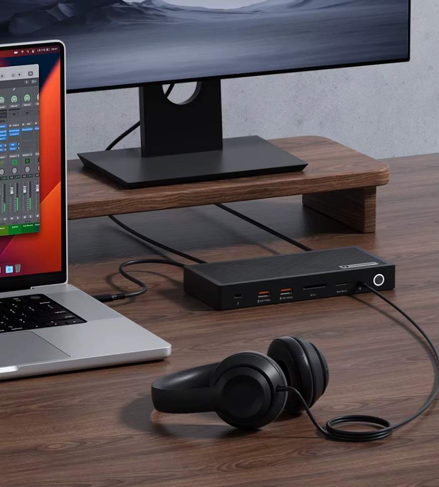 Porta de Áudio 3,5 mm Integrada: Conecte fones de ouvido ou sistemas de som estéreo diretamente à docking station: