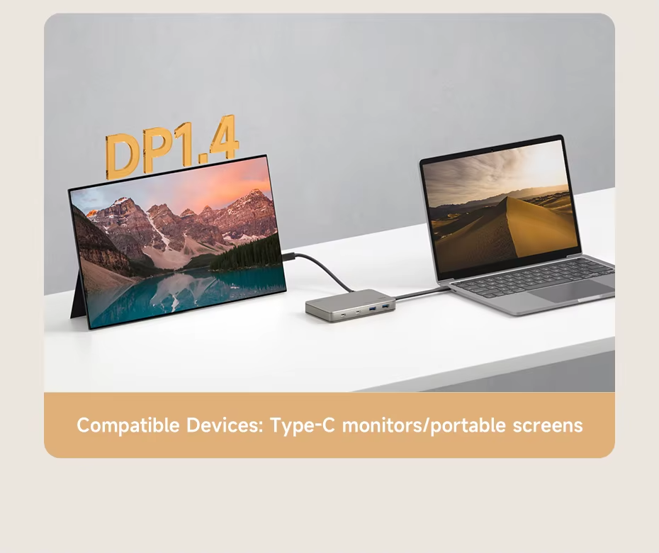 Porta USB4 Downstream com Função Completa: Até 20Gbps, DP 1.4 e fornecimento de energia. Permite transferir dados em alta velocidade enquanto transmite vídeo em 8K, ideal para SSDs e dispositivos de alto desempenho: