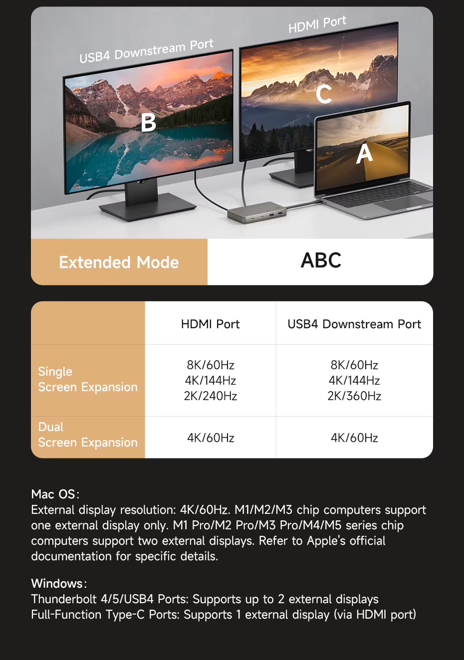 Docking Station USB4 7-em-1 de Alto Desempenho: Velocidade ultrarrápida de até 40Gbps para dados, vídeo e energia em um único hub: