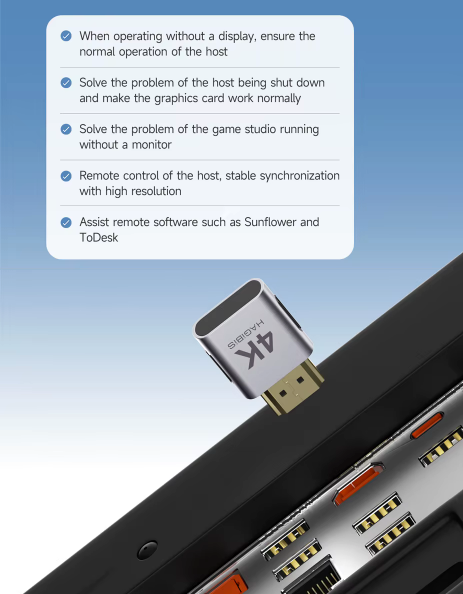Funcionamento Inteligente do Dummy Plug HDMI 4K: Permite o uso total da placa de vídeo mesmo sem um monitor conectado, ideal para controle remoto com desempenho máximo em qualquer cenário: