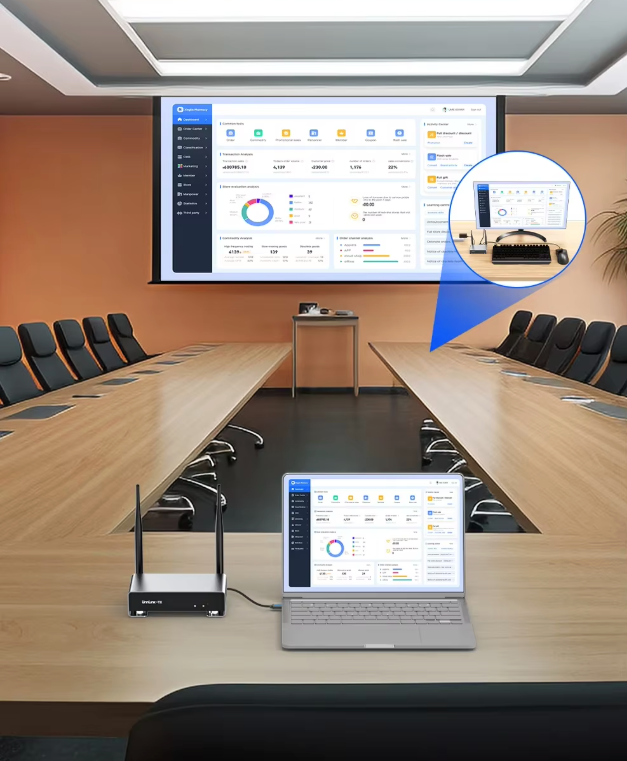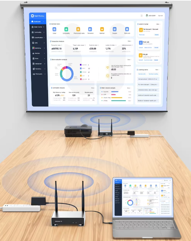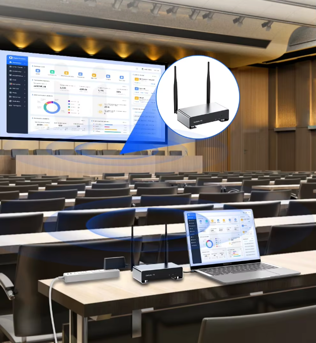 Reuniões em Telões com Total Clareza: Apresente seus conteúdos em grandes telas com transmissão estável, fluida e sem fios — ideal para salas de conferência e treinamentos: