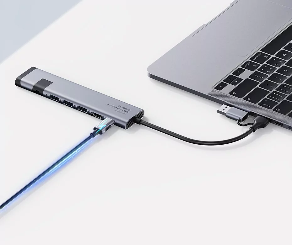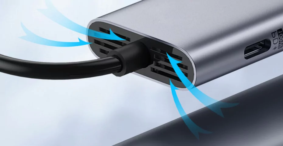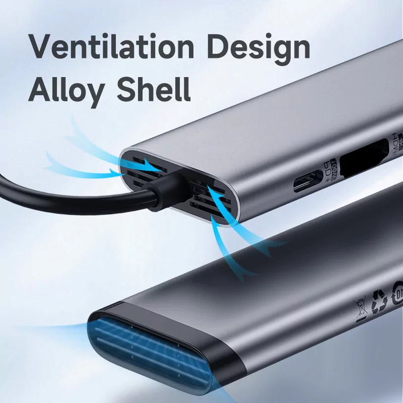 Hub 6 em 1 USB-C/USB-A Dupla Interface: Rápida dissipação de calor: