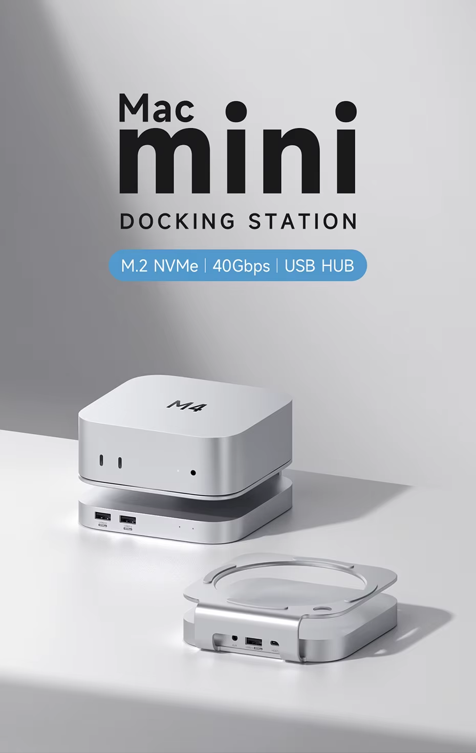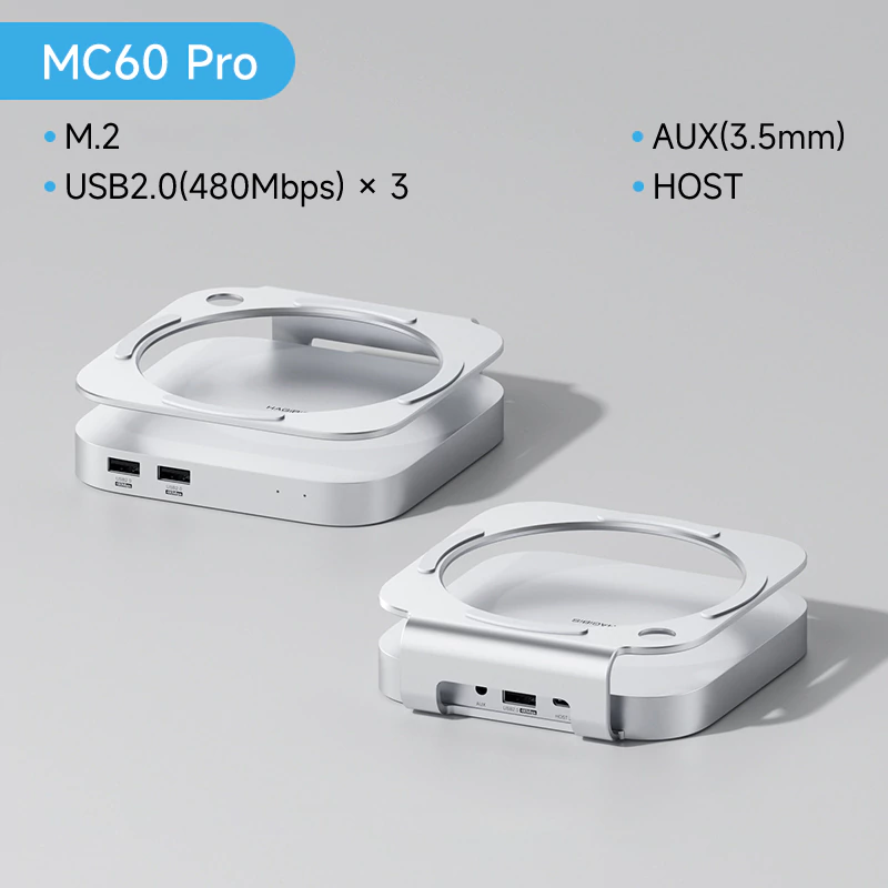 MC60 Pro — Hub USB-C com gabinete M.2 NVMe para Mac Mini M4: Expanda portas, aumente o armazenamento e aproveite até 40Gbps de velocidade: