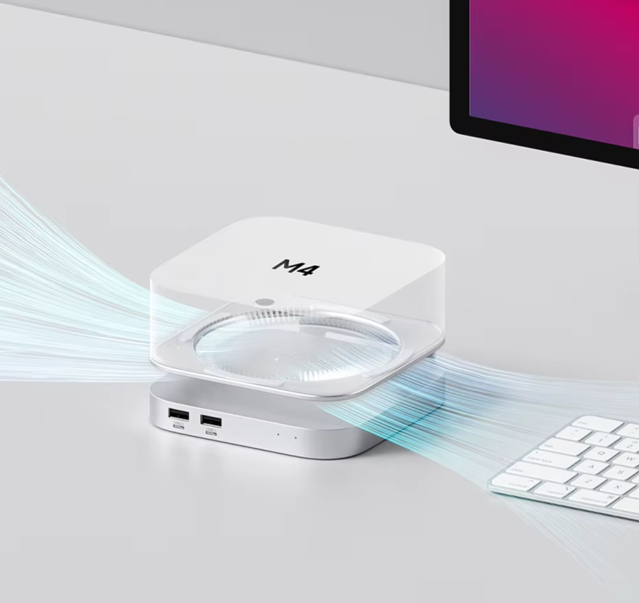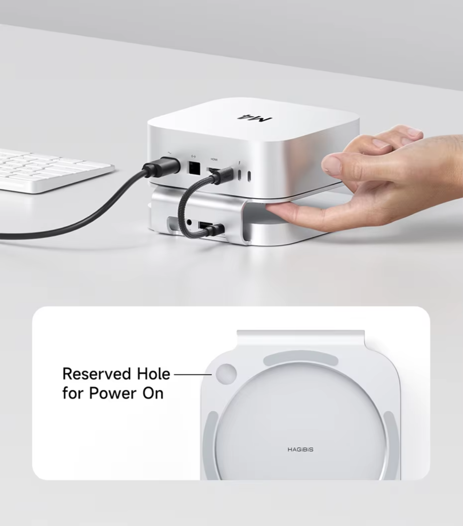 Design que combina perfeitamente com o Mac Mini: Acabamento e curvas R-angle que se alinham ao visual original do Mac Mini: