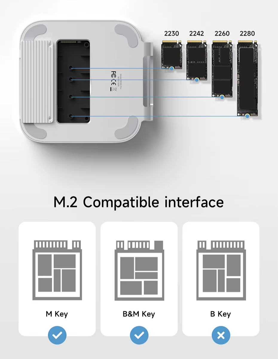 Compatível com SSDs M.2 NVMe até 8TB: O MC60 Pro permite instalar rapidamente unidades M.2 NVMe nos formatos 2230, 2242, 2260 e 2280, oferecendo expansão de armazenamento prática e de alta performance: