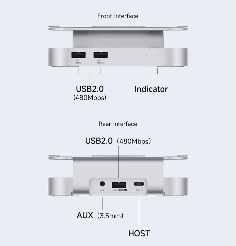 Conectividade de áudio 3.5mm para múltiplos dispositivos: Conecte microfones, headsets e fones com microfone diretamente ao Hub MC60 Pro para uma experiência de áudio prática e integrada ao seu Mac Mini: