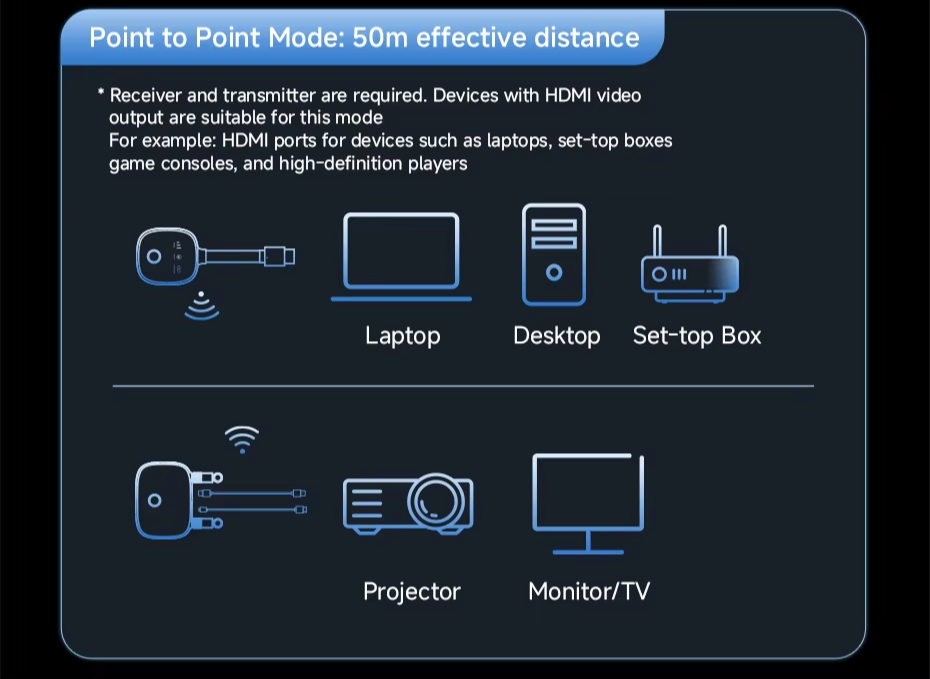 Transmissão Sem Fio de Longo Alcance — Até 50 Metros: Desfrute de liberdade total com transmissão wireless de até 50 metros de distância: