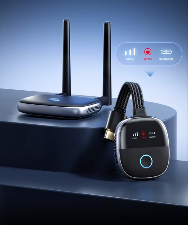 Transmissão Sem Fio até 50 metros: Conecte e transmita com facilidade! O G12W exibe o status em tempo real no display LED e garante transmissão HDMI de longa distância sem complicações: