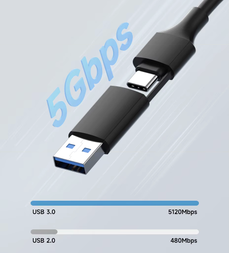 Transmissão USB 3.0 de Alta Velocidade: Oferece até 5Gbps para transferências rápidas e estáveis, muito mais veloz que o USB 2.0 e ideal para arquivos pesados sem travamentos: