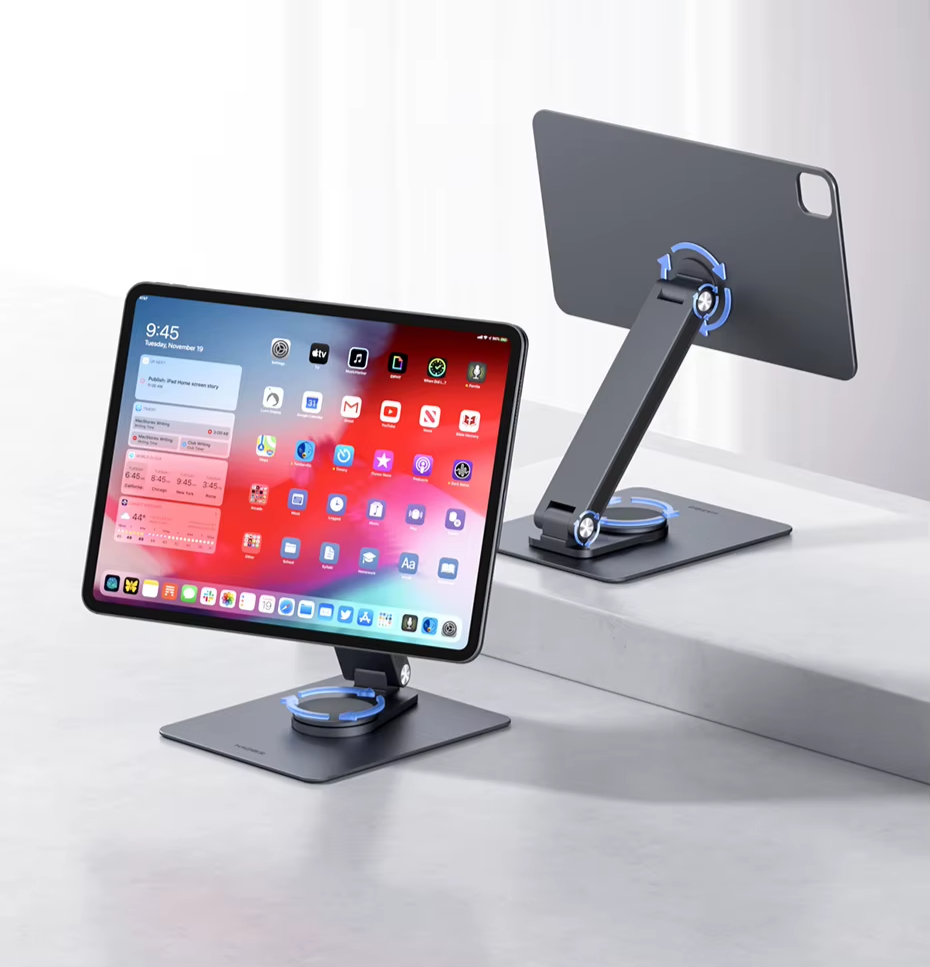 Ajuste Livre de Altura e Ângulo: Tenha total liberdade para posicionar seu iPad Pro M4 como preferir. O suporte conta com 4 eixos ajustáveis, permitindo regulagem precisa de altura, inclinação e rotação, sem limitações de ângulo: