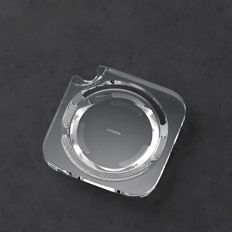 Suporte Transparente para Mac mini M4: Design com furos para botão de energia. Eleva e protege contra poeira, mantendo seu setup limpo e ventilado: